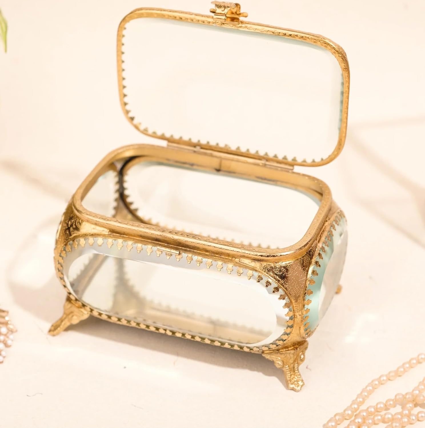 •Class and Quality: Clear glass surrounded by golden brass. Clear glass display boxes perfect to use as a wedding box and a gift box in your first home together. Glass will air-slak and no color fading problem. Size: 5.25×3.5×3.25 inches / 13×8.5×8 cm