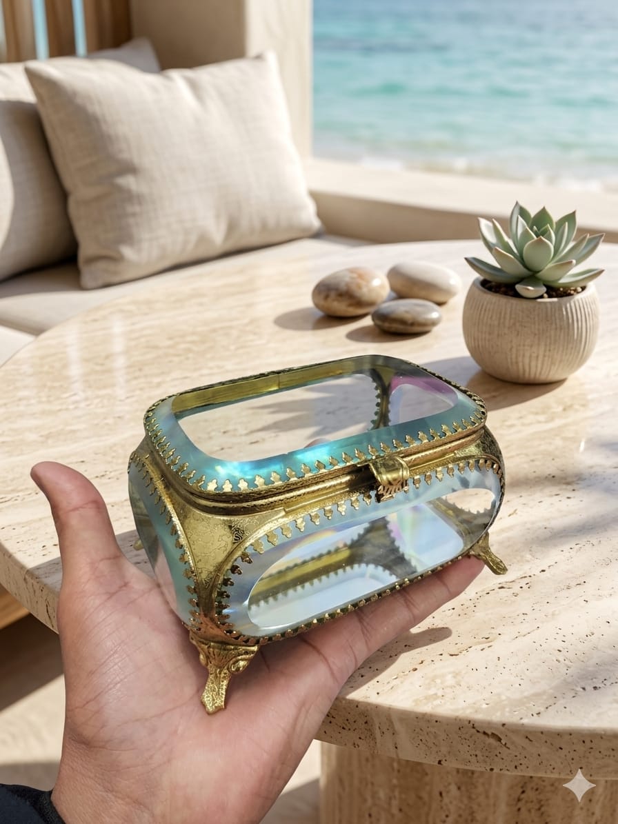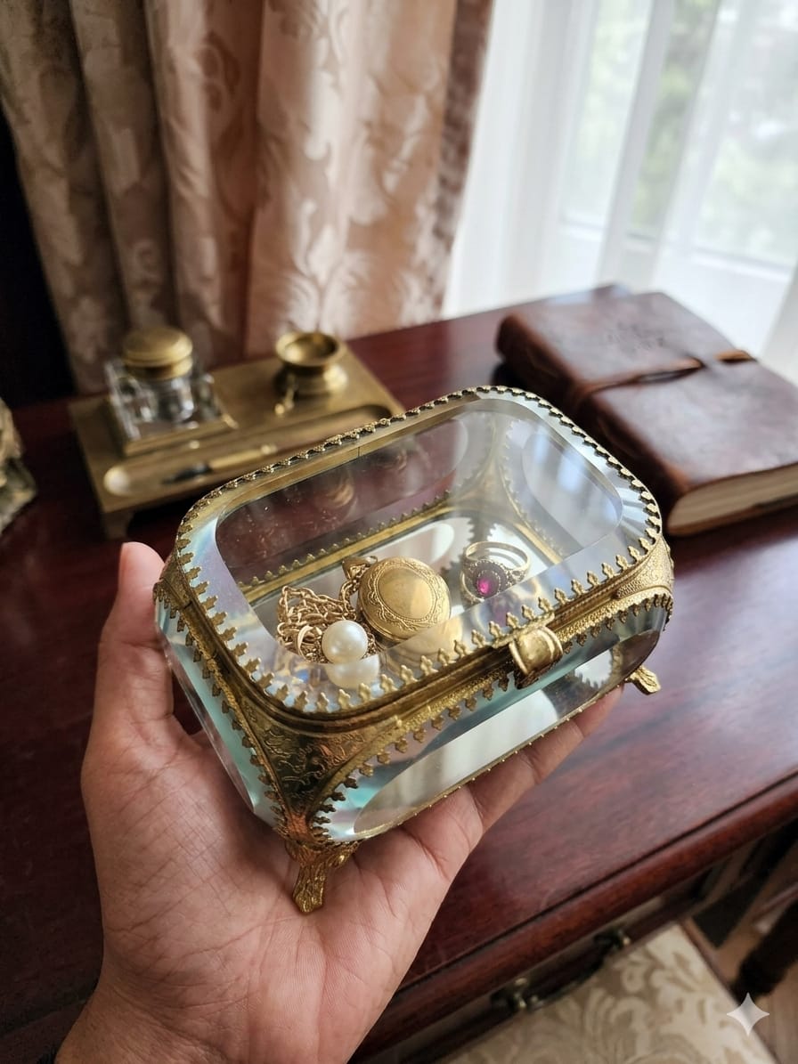 Beveld Glass Brass Jewelry Box 5.5×3.5×2.5″